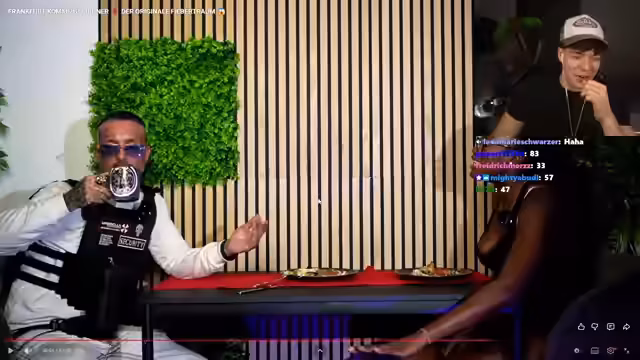 00:27:45Hauptinhalt des Streams ist die Reaktion auf das Video 'Frankfurt kommt zum Dinner'. Der Streamer und seine Community beobachten eine Dating-Show, in der sich Paare in verschiedenen Locations kennenlernen. Eine Teilnehmerin mit dem Namen 'Zamex' fällt durch ihre aufdringliche und dominante Art auf, während der Streamer die Kommentare und Reaktionen der Protagonisten humoristisch kommentiert. Die Videoszenen werden mit einer Mischung aus Verwirrung, Amüsement und Kritik begleitet, besonders wenn die Teilnehmerinnen über unerwartete Erwartungen an Männer sprechen, die bei der Community auf Unverständnis stoßen.