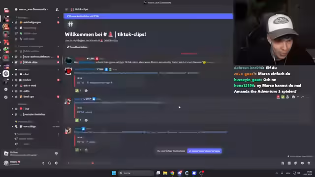 00:25:43Ein neues Community-Format wird vorgestellt: Zuschauer sollen TikToks in einen speziellen Discord-Channel schicken. Wer unlustige Clips sendet, wird gebannt. Marco begründet dies mit dem Ziel, nur qualitativ hochwertigen Humor zuzulassen. Das Format heißt fortan 'Lustige TikToks oder Bann' und soll spamartige Einsendungen verhindern. Er warnt, dass Verstöße zu temporären Banns führen können.