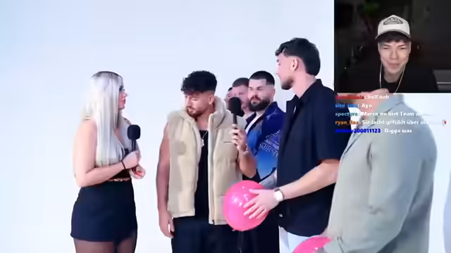 02:34:25Ein Ballon platzt während des Dating-Spiels, was eine Debatte über die Körpergrößen der Teilnehmer auslöst. Der Streamer und der Chat diskutieren, ob es respektlos sei, dass ein männlicher Teilnehmer ausschließlich große Frauen auswählt, was als potenzielle Mobbing-Vibes interpretiert wird. Nachdem sich vier Männer vorgestellt haben, findet ein Match zwischen einer Teilnehmerin und einem Mann namens Niklas statt, nachdem sie seine Frage zum Mitnehmen eines Hundes im Bett positiv beantwortet hat.