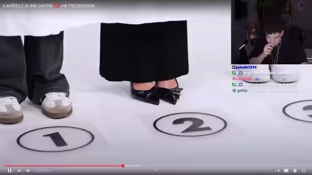 00:37:00Es wird angekündigt, dass auf das Format 'Sechs Mädels Blind Date' reagiert wird. Es wird klargestellt, dass die Freude über das Verlassen eines Streams respektlos war und man sich dafür entschuldigt. Es wird betont, dass man in Zukunft besser aufpassen werde, mit wem man streame. Es wird auf den zweiten YouTube-Kanal hingewiesen. Es wird die Rückkehr von Freddy Keine Show thematisiert und auf dessen Blind Date-Format reagiert. Es wird diskutiert, welches Blind Date-Format bevorzugt wird. Es werden die Kandidatinnen des Blind Dates vorgestellt und über ihr Aussehen und ihre Schuhe gesprochen. Eine Kandidatin wird aufgrund ihrer kriminellen Vergangenheit erwähnt. Es wird darüber gesprochen, ob man selbst schon einmal etwas gestohlen hat. Eine Kandidatin gibt an, bereits Beauty-OPs gehabt zu haben. Es wird über die Ausgaben der Kandidatinnen gesprochen und spekuliert, wofür sie am meisten Geld ausgeben.