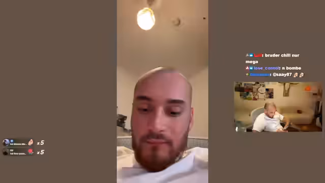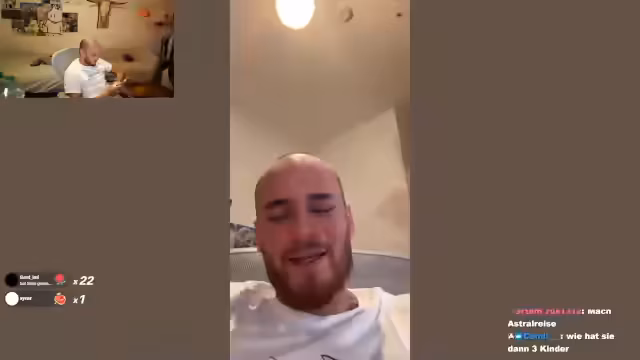 02:47:02Der Streamer wechselt auf TikTok Live und führt zwanglose Gespräche mit neuen Zuschauern. Themen sind das Äußere (Bart, Frisur), Alter (17 vs. 33 Jahre) und persönliche Geschichten wie der Besitz einer wertvollen Goldmünze. Ein Nutzer berichtet von einem geklauten Goldstück durch 'Ali Boumaier'. Der Streamer nutzt die Gelegenheit, um TikTok als Plattform für spontane Interaktion zu nutzen und die Community zu binden.