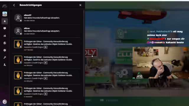 04:47:35Nach erfolgreichem Login bei Ubisoft Connect und dem Finden des Spiels in der Bibliothek beginnt der Streamer sofort mit der Organisation eines Spiels. Es entwickelt sich ein spontanes Duell im Spiel Monopoly. Der Streamer startet eine Lobby und läudd seine Mitspieler über den Chat und seine Moderatoren ein. Es kommt zu ersten Handelsversuchen und humorvollen Auseinandersetzungen, wobei der Streamer den Eindruck erweckt, auf das Gameplay sehr fokussiert und leidenschaftlich eingestellt zu sein.