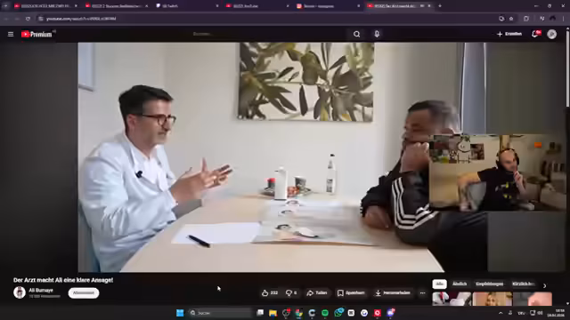 00:54:30Die Streamerin teilt eine detaillierte medizinische Beratung, die Ali erhält. Es geht um ernste gesundheitliche Risiken durch Übergewicht wie Schlaganfall und Herzerkrankungen. Der Arzt rät zu einer umfassenden Änderung des Lebensstils, Ernährung und Bewegung, bevor an eine Operation gedacht wird.