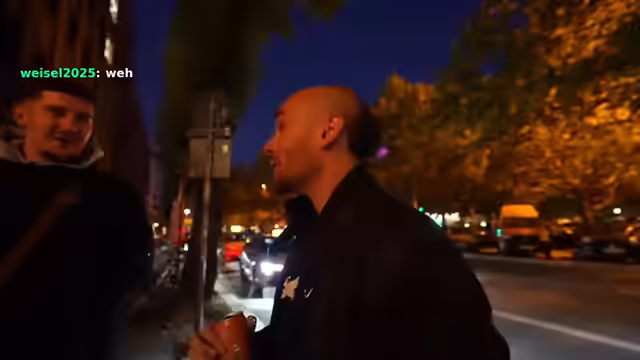 00:07:26Der Streamer interagiert mit Passanten, wobei er darauf achtet, nichts zu zeigen, was problematisch sein könnte. Es werden Duftsachen für Autos und eine Chat-Ear-Bait-Cap erwähnt. Die Gesprächspartner werden nach ihren 'Mount Rushmore' an Pornodarstellern gefragt, wobei Namen wie Madison Ivy und Alexis Texas fallen. Es wird über Erfahrungen auf der Venus-Messe gesprochen, wobei ein Gesprächspartner erwähnt, dass er vor zehn Jahren das letzte Mal dort war und dass es früher 'sanfter' zuging. Heutzutage würden die Leute dort 'loslegen wie sonst nicht'. Es wird über gefilmte Aktivitäten auf der Bühne und die 'Wichskabine' gesprochen, ein Spiel, bei dem es darum geht, in einer Kabine, in der jeder zusehen kann, den Highscore im 'Wichsen' zu erreichen. Der Streamer erzählt von seiner eigenen Erfahrung in der Wichskabine und wie er es in die Top 9 geschafft hat. Es wird über Exploits bei diesem Spiel spekuliert und darüber, wie eine Frau gewonnen hat. Der Streamer scherzt darüber, dass er den nächsten 'Wichser' interviewen wird und lobt die Jacke eines Passanten. Es wird festgestellt, dass die Ampel am Moritzplatz die schlimmste in Berlin ist. Der Streamer scherzt über Paare, die die Venus besuchen, und fragt ein Paar, was sie gewonnen haben. Es wird über falsche Versprechungen und eine 'geile Cap' gesprochen. Der Streamer setzt sich kurz hin und überlegt, wie lange die Venus noch geöffnet hat. Es wird spekuliert, ob Johnny Sins noch da ist und geplant, am letzten Tag alles 'abzugreifen'. Der Streamer macht einen Snap und kündigt einen Vlog an, der 'geisteskrank' werden soll. Ein TikToker wird getroffen, der die Venus als 'voll Müll' bezeichnet, woraufhin sich der Streamer distanziert. Es wird über den Respekt zwischen Mitmenschen und einen Trend auf TikTok gesprochen, bei dem Leute ihre gefundenen Stöcke zeigen.