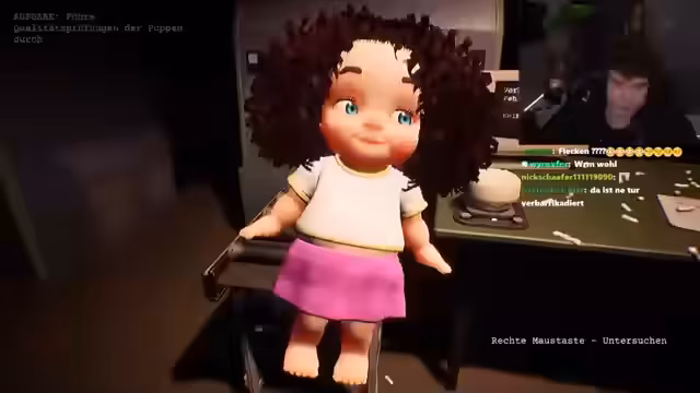 01:58:04Nach den technischen Problemen versucht der Streamer, die Folge fortzuführen, indem er stattdessen auf ein Horror-Spiel mit dem Titel 'Sweet Cheeks Factory' umstellt. Der Spieler nimmt die Rolle eines Puppen-Inspectors in einer scheinbar unheimlichen Spielzeugfabrik an. Die Aufgabe ist es, defekte Puppen zu identifizieren und zu entsorgen. Der Streamer interagiert stark mit dem Chat und liest seine Kommentare vor, während er durch das Spiel navigiert und dabei immer wieder für Verstöße gegen die Sicherheitsregeln im Spiel gerügt wird.