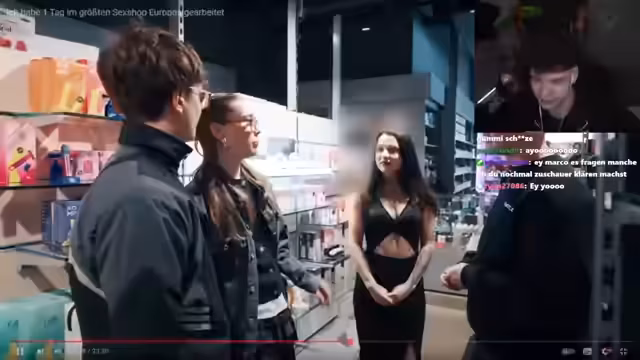 01:04:57Der Stream beginnt mit einer Diskussion über das Thema Sexspielzeuge und Tabus. Die Gäste sind hier, um sich beraten zu lassen, da Männer aus ihrer Erfahrung heraus seltener solche Produkte verwenden als Frauen. Die Verkäuferin erklärt, dass ihre Kunden komplett durchmischt sind und aus allen Berufsklassen stammen. Sie kann den Kunden nicht ansehen, was sie suchen, und nennt überraschend Füße und Vapes als häufige Interessen. Hygiene ist im Geschäft ein wichtiges Thema, da die Produkte ständig gereinigt werden müssen, da viele Kunden sie anfassen.