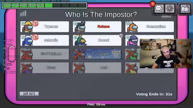 03:10:49Nachdem Schradin fälschlicherweise aus dem Spiel gewählt wurde, konzentrieren sich die Verdächtigungen auf Trimax. Die Begründung ist, dass er während des Kill-Zeitpunkts verdächtig aktiv war und sich verdächtig verhielt. Trimax versucht, sein Alibi zu sichern, indem er seine Bewegungen darlegt, doch sein Verhalten überzeugt nicht alle. Der Druck auf Trimax steigt, da die Lobby denkt, dass er der verbleibende Imposter sein muss.