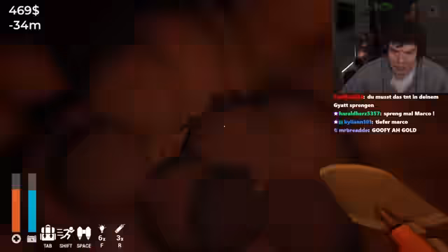 02:24:47Hauptthema des Streams ist ein Spiel, in dem man ein Loch gräbt. Der Streamer kauft ein scheinbar günstiges Haus für 10.000 US-Dollar, in dessen Garten angeblich eine Schatztruhe vergraben ist. Um diese zu finden, erhält er einen Metalldetektor aus dem 1-Euro-Shop, der jedoch bei leerer Batterie explodieren kann. Die Herausforderung besteht darin, Ressourcen wie Erze zu sammeln, um die Ausrüstung wie Schaufel, Inventargröße und die Batterie zu upgraden.