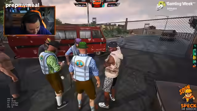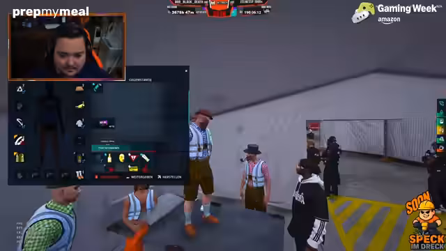05:30:32Der Streamer plant einen koordinierten Einsatz im Spiel, bei dem eine Gruppe von 15 Leuten per Fallschirm abspringen soll. Es geht darum, ein Lager auszurauben und dabei eine große Menge an Waffen und Ausrüstung wie Uzis, Pistolen, Leitern und Munition mitzunehmen. Der Fokus liegt darauf, die Truppe bestmöglich zu bewaffnen und für den bevorstehenden Einsatz vorzubereiten, wobei genaue Rollenverteilungen und Abläufe diskutiert werden.