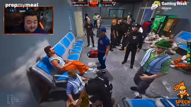 07:52:56Ein zentrales Ereignis des Streams ist die erfolgreiche Geiselnahme, um aus einer Gefangenschaft zu entkommen. Dabei wird ein Polizist als Geisel genommen und mit einer Waffe bedroht, um sich den Weg zum Tor freizuschieben. Nach einer hitzigen Diskussion und unter ständiger Androhung von Gewalt gelingt es der Gruppe, eine Flucht mit einem Geisel zu beginnen. Im Verlauf der Flucht werden jedoch wichtige Gegenstände wie Waffen liegen gelassen.