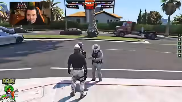 05:13:25Der Streamer simuliert eine Verkehrskontrolle, bei der er einen Autofahrer anstoppt und ihn unter Druck setzt. Diese Interaktion dient zur Demonstration von Rolleplay und zur Erhebung von 'Strafgeld'. Gleichzeitig führt er unkonventionelle Aktionen durch, wie das Betanken eines Lasters mit falschem Kraftstoff und das Fahren unter Atemschutzmasken, was zu lustigen und chaotischen Situationen im Straßenverkehr führt.
