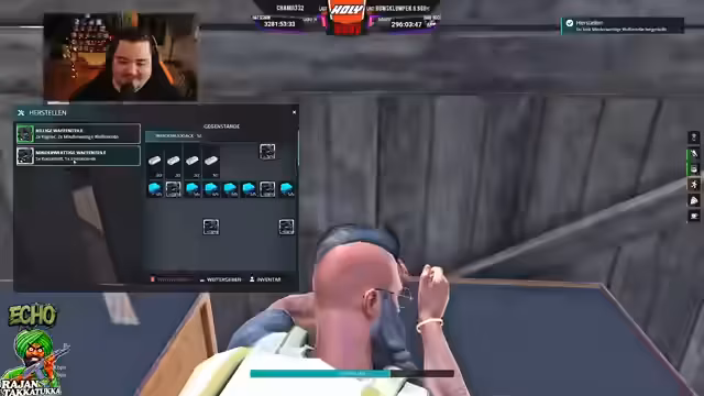 00:42:21Ein zentraler Fokus des Streams liegt auf dem Management von Ressourcen. Der Streamer koordiniert die Anlieferung von Kunststoff und Eisen durch seinen Lieferanten. Es finden detaillierte Gespräche über die Lagerverteilung statt, wobei Eisen und Kunststoff in das Stahllager sollen, während Edelmetalle wie Kupfer und Gold getrennt gelagert werden. Die wichtigste Aufgabe ist die Produktion von grauen Waffenteilen, wofür die Anlieferung und der Abtransport der Rohstoffe priorisiert wird.