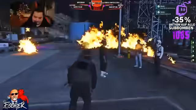 11:10:19Eine angespannte Situation entsteht bei einem Geldautomaten-Einsatz, bei dem die Hand des Streamers im Automaten stecken bleibt. Nach erfolglosen Versuchen, die Hand mit hauseigenen Mitteln zu befreien, wird die Feuerwehr (FD) alarmiert. Parallel dazu findet eine große Verfolgungsjagd statt, bei der mehrere Einheiten beteiligt sind und Fluchtverfolger in Richtung UBM-Hood fahren.