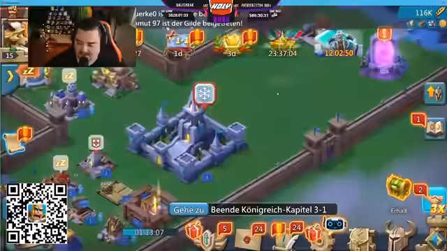04:37:58Der Fokus liegt auf der Entwicklung der Gildeburg im Spiel Lords Mobile. Der Streamer zeigt, wie man Gebäude wie Lazaretts und Kasernen aufbaut und verbessert. Er betont die Wichtigkeit der gegenseitigen Hilfe unter den Gilde-Mitgliedern, um schnell voranzukommen. Das Ziel ist es, innerhalb von zwei Wochen eine Burg von Level 8 auf mindestens Level 12 zu bringen.