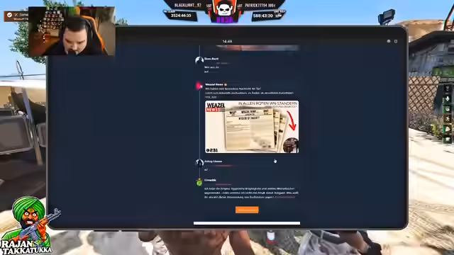 01:38:02Der Streamer plant eine größere Waffengeschäft mit einem Kunden namens Russel. Es geht um einen Waffenwert von 425.000, bestehend aus verschiedenen Waffentypen wie Scorps, Ozzis und Keks. Die ursprünglich für 16 Uhr geplante Übergabe wird aufgrund von Abwesenheit von Rose verschoben. Der Streamer diskutiert Alternativen und betont die Wichtigkeit des Geschäfts für sein Team.