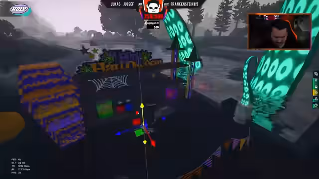 07:24:06Die technische Umsetzung des geplanten Halloween-Dorfs wird konkret geplant. Es wird nach passenden Props, wie alten Zäunen und Gräbern, gesucht. Der Bau soll so gestaltet werden, dass die Spielzonen nicht durch die Dekoration blockiert werden. Die Wettereffekte wie Nebel und Partikeldichte werden getestet, um die bestmögliche, gruselige Atmosphäre zu erzeugen und die Bugs, wie den Ausfall der Lichter, zu beheben.