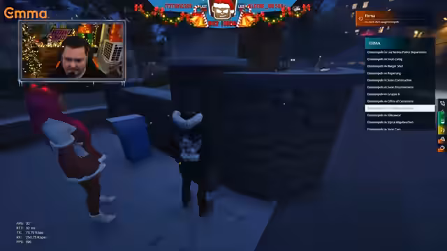 07:48:11Es wurde über Goldstücke gesprochen, die ein Fan bei einem Einkauf entdeckt hat. Die Unterhaltung drehte sich um einen Namen, und es wurde mehrfach nach einer Person namens Elijah Gomez gefragt, die möglicherweise in Haft ist. Die Absprachen für Weihnachtsgeschenke liefen, und ein Weihnachtsmann konnte loslegen. Die Stadt sollte schöner werden, und die Lager mussten umgezogen werden, da eine Mauer zugegangen war.