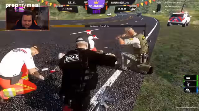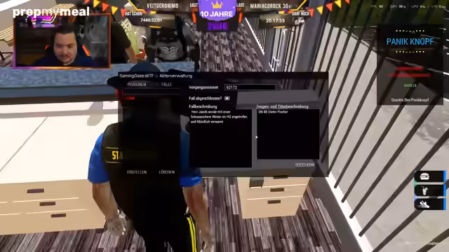 01:28:59Die Gruppe befindet sich immer noch in der Christenhalle. Es wird überlegt, ob die andere entführt werden sollen. Der Streamer fragt, ob er Morel mitnehmen soll. Es wird gefragt, was zwischen den Personen ist und ob sie keine Eier haben, den Tank in die Luft zu jagen. Es wird festgestellt, dass die Gruppe heute sehr klein ist. Der Streamer genießt es, hier sein zu dürfen und wird als Idiot bezeichnet. Es wird überlegt, eine Leiter zu bauen und rauszubrechen. Toni bekommt einen Hinweis und Haftanheiten. Der Streamer hat sich geschrieben, dass die Cops kommen, um Panik zu machen und dass er Influencer ist. Die Gruppe geht zusammen was essen. Es wird überlegt, den Russen raushängen zu lassen. Toni wird verarscht und die Gruppe steckt fest. Es wird überlegt, einen Helikopter vom Kartell zu holen. Toni soll die Leiche verätzen und gefragt, ob jemand Sprengstoff hat, um die Türen zu sprengen.
