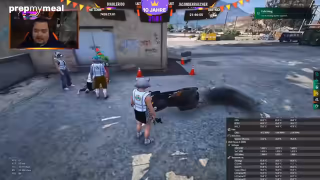 00:00:03Zu Beginn des Streams gibt es Diskussionen über Kühlungsprobleme eines Rechners, wobei vorgeschlagen wird, das Gehäuse zu öffnen und den Kühler auf die Klimaanlage zu stellen. Es folgt eine humorvolle Auseinandersetzung über einen angeblichen Überfall auf jemanden wegen Eistee. Die Frage, wie tief man sinken muss, um sich keinen Eistee mehr leisten zu können, wird aufgeworfen. Es wird spekuliert, wer von den Anwesenden dafür verantwortlich sein könnte. Später im Stream wird die Grafikqualität thematisiert, und es wird erwähnt, dass diese eventuell durch Umschrauben der Grafikkarte verbessert werden könnte. Es gibt auch einen kurzen Exkurs über persönliche Anekdoten, einschließlich einer Bemerkung über Nottelmanns Mutter. Der Streamer spricht über Waffenlager und Einbrüche, wobei er sich auf die Route 68 bezieht und erwähnt, dass er nicht sicher sei, ob es sich um ein Waffenlager handelt.