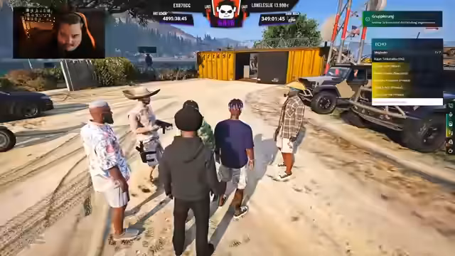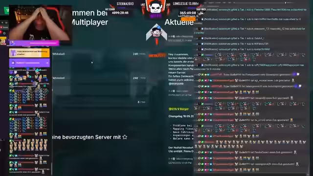 08:42:09Bei 31329 Uhr bricht Chaos aus, da die Kisten mit der Beute plötzlich durch den Boden fallen und für unerreichbar gelten. Mehrere Gruppen sind gleichzeitig an der Stelle und es kommt zu Diskussionen über geregelte Vorgehensweisen. Der Streamer schlägt eine Regelung vor, bei der nur jeweils maximal 20 Teilnehmer pro Gruppe mitmachen dürfen, um eine fairere Verteilung zu gewährleisten, während gleichzeitig die Polizei eine übermächtige Position einnimmt.