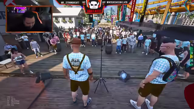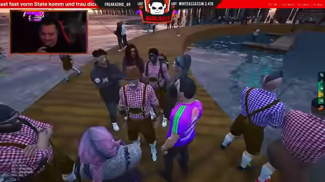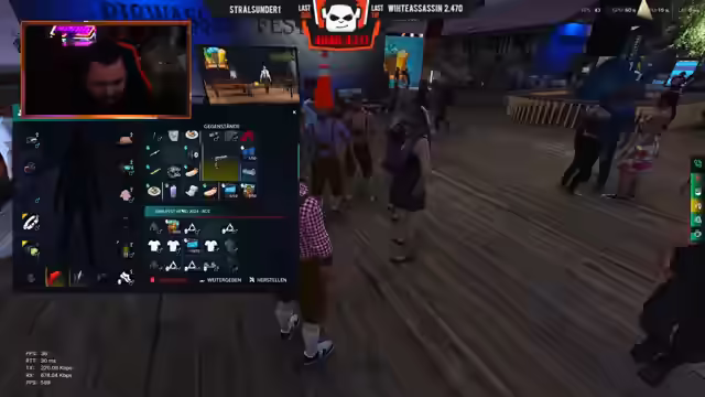 05:46:14Es wird eine Idee besprochen, beim Glücksrad ein Foto vom Gesicht des Drehenden zu machen und den Namen anzuzeigen, um so Werbung für einen neuen Club zu machen. Der Streamer berichtet von 170 Leuten bei der Eröffnungsrede und plant, das Oktoberfest zu besuchen. Es gab ein Gespräch mit O'Brien, der beim Glücksrad Fotos machen soll, um Solid Pflege zu betreiben. An einer Tafel soll der Name des Drehenden angezeigt werden, um AGV-Namen zu generieren. Es wird erwähnt, dass es bei jeder Aktion Coins gibt und Kicker mit dabei ist. Bühnenprogramm, Angeln, Washington und Drag Race werden angeboten. Fotos mit verschiedenen Hintergründen sind möglich. Klamotten, Dürndls und Trachten sind vorhanden, aber Kickerware ist besonders gefragt. Es wird erwähnt, dass beim Angeln viele Leute sind und dass jedes Produkt in der Osthauskasse zusätzlich die Kreuzer erhält. Es wird über das Fallschirmspringen auf einen Ring und Drag Race auf Bierkästen mit NOS gesprochen.