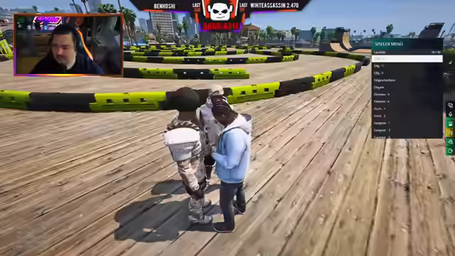 12:12:00Es wird eine Schadensanalyse am Fahrzeug durchgeführt, um Defekte zu identifizieren und zu reparieren. Die Möglichkeit, Reifen von anderen Fahrzeugen zu stehlen, wird diskutiert, jedoch wird davon abgeraten, dies bei den eigenen Leuten zu tun. Ein Charakter wird leicht verletzt und repariert sich schnell selbst. Es folgt eine Diskussion darüber, wie man als Fahndungsführer von der Bank aus Aktionen eskalieren kann, wobei das Schießen auf das Auto des Gegners als Option in Betracht gezogen wird. Später wird ein Gespräch über die Aufnahme neuer Leute geführt, wobei ein Patch auf dem Ärmel eines Bewerbers abgelehnt wird. Der Name des Teams wird von GT in GG (Gambo-Game) geändert. Es wird kurz über Addons und deren Optionen gesprochen, insbesondere im Zusammenhang mit dem Angeln, das im Vergleich zu früher als weniger lohnend empfunden wird. Persönliche Einstellungen werden angepasst, um Lautstärke und Benachrichtigungen zu personalisieren. Es wird erwähnt, dass GTA gebannt ist und nicht gespielt werden kann.