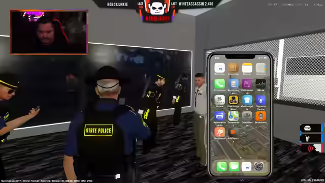 02:21:58Es werden Informationen ausgetauscht, wo sich die SIB im Gebäude befindet. Es wird überlegt, ob man sich in die geschwärzte Akte hacken soll, um den zweiten Snitch zu finden. Es wird befürchtet, dass die SBI den Computer unhackbar macht. Es wird geplant, in eine Bodycam zu ballern, um zuzugucken. Es werden Halloween-Kostüme begutachtet. Es wird besprochen, dass ein Auto von JT an der Harmony-Schließfach gesehen wurde und dann über die Grenze gefahren ist. Es wird vermutet, dass Ben Pi den Fall normal ermitteln wird. Es wird geplant, die Schlösser auszutauschen oder sich in das System zu hacken und ihn einzustellen, um Zugang zu den Türen zu erhalten. Es wird eine neue Funktion auf der Plattform erwähnt, mit der man Clips machen und direkt auf TikTok, YouTube oder anderen Plattformen hochladen kann. Es wird erklärt, wo sich der Einstempelpunkt befindet. Ein Plan wird besprochen und durchgeführt. Ein Mann wird im SBI-Büro angetroffen, der sich als Officer ausgibt, aber keinen Dienstausweis vorzeigen kann. Er wird festgenommen und durchsucht. Es wird ein Zettel mit Missionsaufgaben gefunden, der sich auf die Infiltration des NLMRPD bezieht.