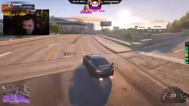 01:38:43Ein Höhepunkt des Streams ist ein unvorhergesehener, lustiger Moment im Grand Theft Auto RP. Während einer Fahrzeugverfolgungsjagd kommt es zu einem absurden Vorfall, bei dem ein Gegner versehentlich eine eigenartige, humorvolle Aktion auslöst. Der Streamer und seine Freunde, darunter J.D., Caro und Solo, finden die Situation so amüsant, dass sie sie im Discord teilen und als erinnerungswertes Erlebnis betrachten.