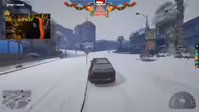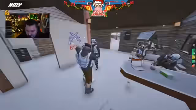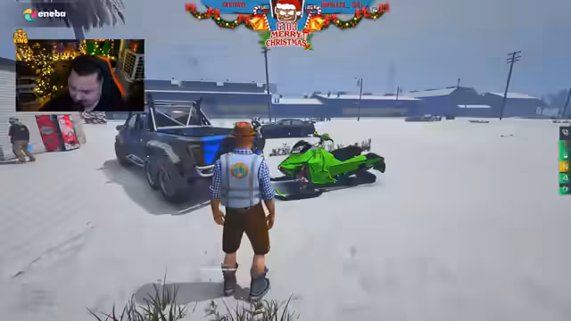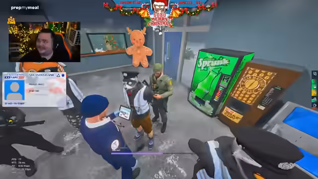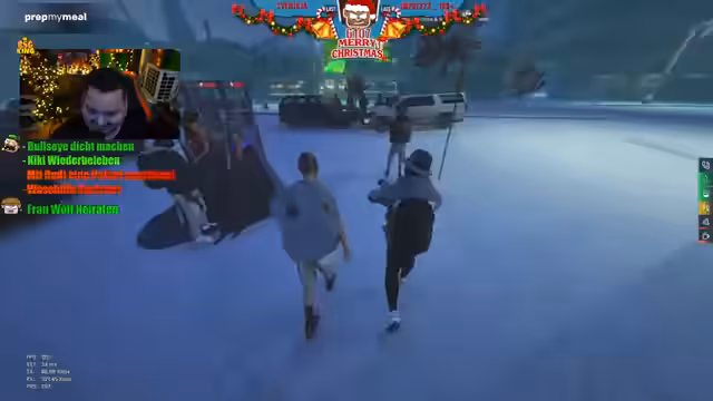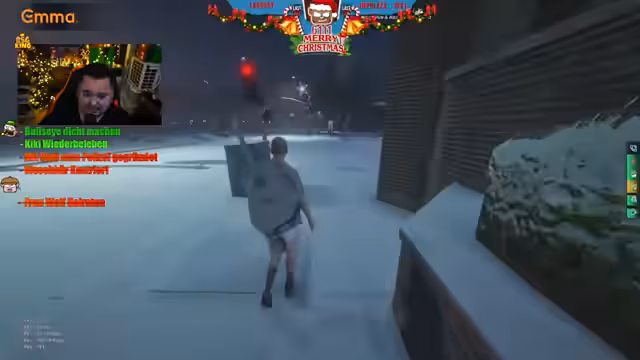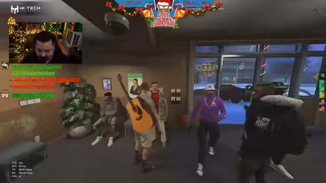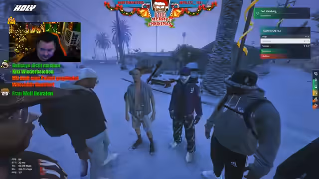 01:52:52Die Gruppe übernimmt im Spiel das PD und richtet eine improvisierte Leitstelle ein. Sie versenden Rundmeldungen über geschlossene Stationen und verteilen humorvoll 'Geschenke' an andere Spieler. Der Streamer organisiert die Rollenverteilung und diskutiert die Logistik der Aktion, einschließlich der Notwendigkeit von Winterreifen für die Fahrzeuge während der virtuellen Übernahme.