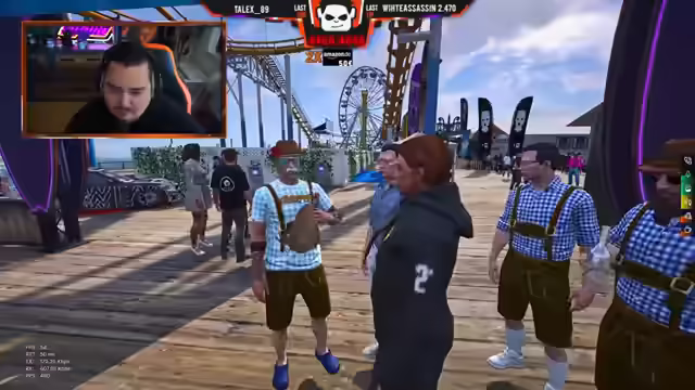 10:19:58Es werden einige Zahlen zum Oktoberfest genannt: Im Durchschnitt waren über 350 Besucher gleichzeitig anwesend, insgesamt wurden etwa 2400 unterschiedliche Personen gezählt. Es wurden 150 Trick-or-Treat-Eimer und über 100 Dirndl sowie 106 Lederhosen verkauft. Über 300 Sammelkarten wurden abgesetzt, und es wurden über 200.000 Enten ausgenommen. Durch die Shops wurden bereits 1,4 Millionen Coins ausgegeben. Kickerware hat für über 372.000 Coins verkauft. Es wird sich bei den Firmen bedankt, die mitgemacht und Schichtpläne erstellt haben, um fast rund um die Uhr präsent zu sein. Es wird sich bei Pimmelfrau und Elliot für ihre Unterstützung bedankt. Es wird eine Verlosung der Autohäuser und danach die Verlosung eines 1,6 Millionen Dollar teuren Fahrzeugs angekündigt. Anschließend soll es ein Gruppenfoto mit allen in Dirndl und Tracht geben, gefolgt von einem Feuerwerk. Zum Abschluss gibt es noch ein Squid Game Event auf dem Parkplatz. Es wird sich bei den Autohäusern bedankt, die die Verlosung mit einem Neuwert von 1,1 Millionen Dollar ermöglicht haben. Insgesamt wurden 15.412 Lose verkauft, mit 353 unterschiedlichen Teilnehmern und 29 Verkäufern aus 8 Autohäusern. Es wurden 80.000 Franzeltaler ausgegeben. Die Gewinner können ihre Fahrzeuge bei Zunkas abholen, und sie werden auch noch eine Woche nach der Veranstaltung kontaktiert. Es wurden 1500 Liter Bier verkauft. Die Gewinner der einzelnen Autos werden bekannt gegeben.