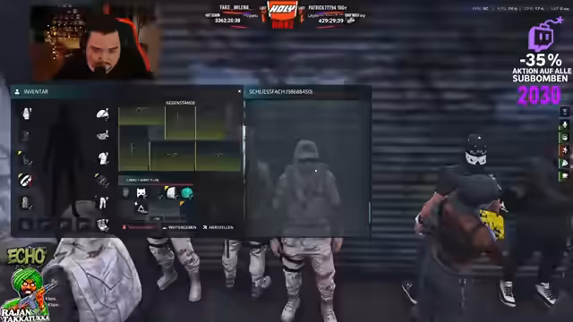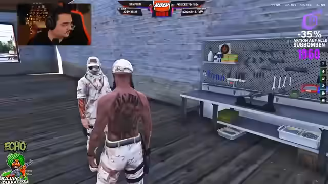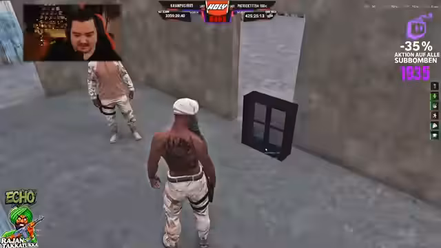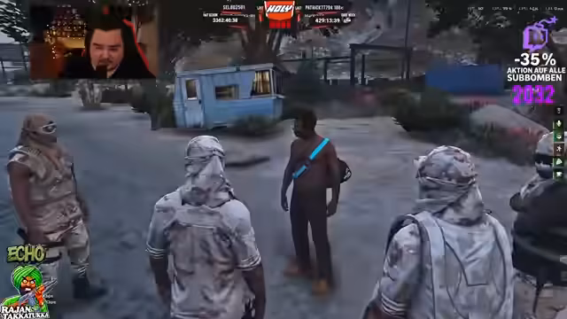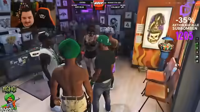 01:02:28Ein aktiver Handelsteil im Spiel. Es wurden Waffendeals abgewickelt, wie beispielsweise der Verkauf von drei Tropical Eagle für 35.000 Dollar. Gleichzeitig fanden Gespräche über Drogenhandel statt. Der Streamer diskutierte den Preis von Spritzen und wies darauf hin, dass er einen hohen 'Faktor' für bestimmte Substanzen habe. Es gab auch Absprachen über den Verkauf von Melona-Droge für 19.95 pro Einheit. Diese Handelsaktivitäten sind zentral für die In-Game-Wirtschaft und die Gang-Konflikte.