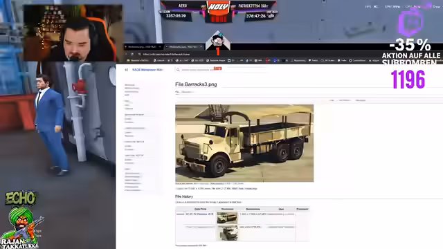 08:33:43Der Streamer gab einen Rückblick auf die Verkäufe der letzten Tage, bei denen allein 200.000 verkauft wurden, und erwähnte weitere Einzelverkäufe. Gleichzeitig wurden Probleme mit der Sicherung der Fahrzeuge angesprochen. Es wurde festgestellt, dass ein Teil der Karren nicht richtig verschlossen war, was zu Sorgen bezüglich der Sicherheit führte. Der Streamer betonte, dass er regelmäßig alle Fahrzeuge kontrollieren muss, um Diebstähle zu verhindern.
