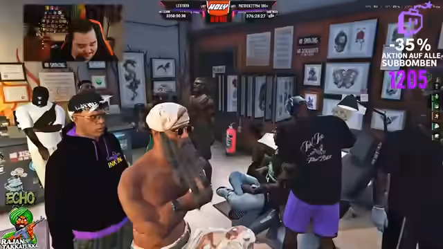 02:20:49Die Unterhaltung dreht sich stark um den persönlichen Prozess des Streamers, sich tätowieren zu lassen. Er erwähnt seine bevorstehende Sitzung, zeigt bereits bestehende Tattoos und spricht über die Lasern alter Tätowierungen. Dabei werden sowohl physische Aspekte wie Hautverträglichkeit und Sitzungsanzahl als auch die Vorfreude auf neue Motive und die Idee, ein Tattoo-Studio im FBI-Tower zu eröffnen, thematisiert und humorvoll aufgelockert.