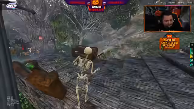 02:56:32Der Streamer kündigt eine neue Kooperation und Partnerschaft an, deren Briefing er nach dem Stream durchsehen und am nächsten Tag der Community vorstellen wird. Er freut sich sehr über diese Entwicklung. Parallel dazu erlebt der Streamer weiterhin zahlreiche Jumpscares, die Teil des Halloween-Events sind. Er wird wiederholt von gruseligen Effekten überrascht, die ihn zum Schreien bringen, und stellt fest, dass er oft zu denselben Spielern geportet wird, die sich entweder erschrecken oder bereits wissen, dass er kommt. Er äußert den Wunsch, mehr zu weiblichen Spielern geportet zu werden, da diese am meisten schreien. Diese Ereignisse verdeutlichen die interaktive und oft chaotische Natur des Streams während des Halloween-Events, bei dem die Jumpscares eine zentrale Rolle spielen.