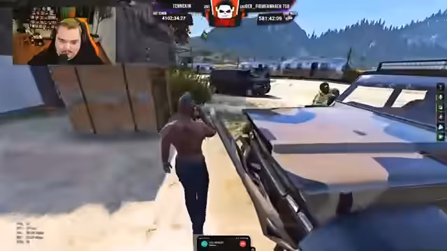 06:34:28Eine spontane Konfrontation mit der Polizei eskaliert, als der Streamer einem Polizeifahrer seine Waffe zeigt, um dessen Lackierung bewundern zu können. Dies führt zu einer Verfolgungsjagd. Um der Festnahme zu entgehen, wird ein Notfallplan aktiviert, bei dem Mitstreiter illegale Gegenstände übergeben und aussteigen. Eine Festnahme eines Teammitglieds ('Bobo') mit Handschellen zwingt die Gruppe zu improvisierten Rettungsaktionen.