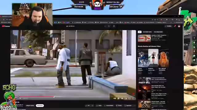08:34:11Der Streamer befindet sich mitten in einer dramatischen Verfolgungsjagd durch die Stadt. Er muss vor der Polizei flüchten, die mit Hubschrauber und mehreren Streifenwagen die Suche aufgenommen hat. Während der Fahrt kommt es zu technischen Problemen mit dem Fahrzeug, und der Streamer muss improvisieren, um der Festnahme zu entgehen. Die Situation eskaliert, als er feststellt, dass neben ihm eine Polizeiauto steht, das er bis dahn nicht bemerkt hatte.