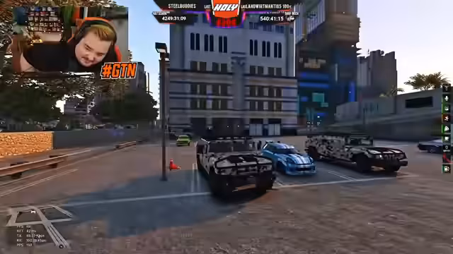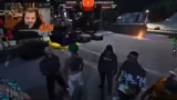 08:08:45Die Gruppe fährt Patrouille, um die Präsenz in verschiedenen Stadtteilen zu zeigen und nach Aktionen Ausschau zu halten. Es kommt zu Begegnungen mit anderen Spielern und Gangs, sowie zu kleineren Auseinandersetzungen. Der Streamer stellt dabei fest, dass einige Spieler aktiv sind, während andere abwesend sind, und versucht, die Aktivität zu steigern.