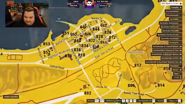 06:44:52Ein weiteres Geschäftskonzept wird für Sandy Shores vorgestellt: die Einführung eines Maut-Systems. An den Grenzen der geplanten neuen Siedlung soll eine Maut für das Durchfahren der Straßen erhoben werden. Wer ohne gültige Maut sticker die Straße nutzt, muss eine zehnfache Strafe zahlen. Dieses Konzept soll die Gruppe bereichern und gleichzeitig die Kontrolle über den Handelsverkehr in der neuen Region sicherstellen, was zur 'Goldgrube' werden könnte.