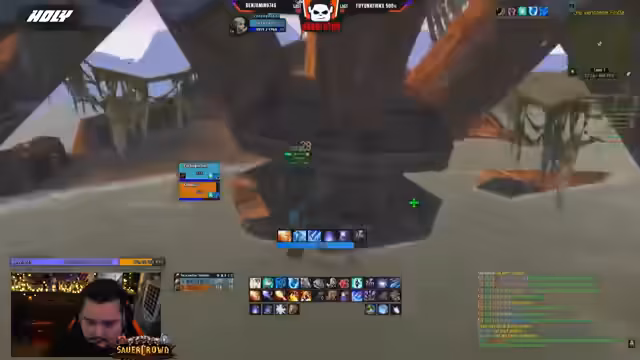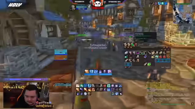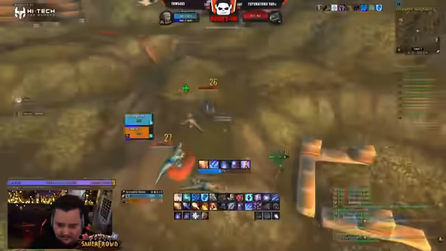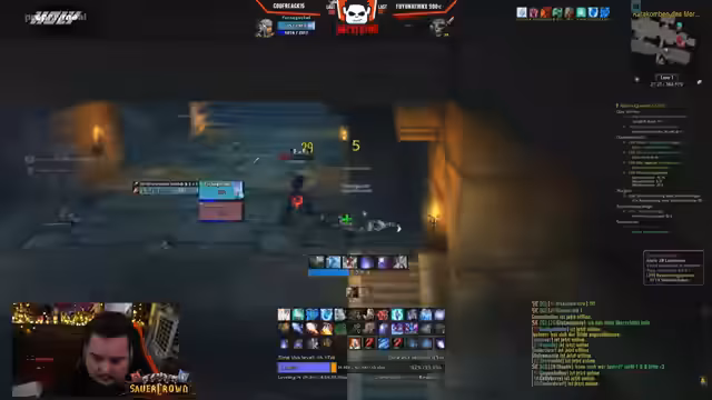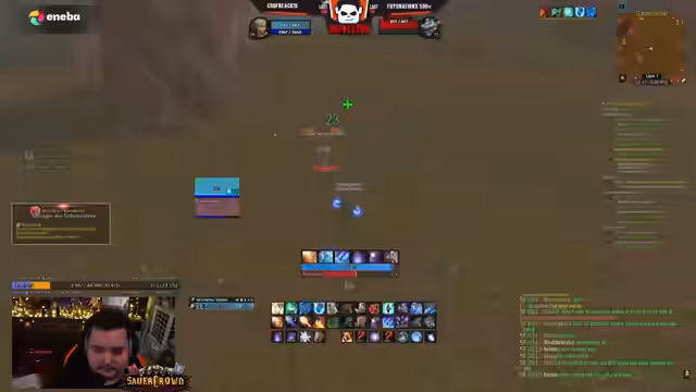 03:22:42Der Streamer stolpert über eine Mechanik, bei der man in WoW durch Sitzen einen garantierten kritischen Treffer auslösen kann. Dies führt zu einer ungewollt, aber wirksamen Taktik, um besonders starke Gegner zu besiegen. Gleichzeitig gibt es technische Probleme mit seiner Setups, da er seinen Tisch nicht mehr bewegen kann und überlegt, wie er seine Stream-Anlage anpassen kann. Die Problemlösung wird improvisativ und mit der Hilfe des Chats angegangen.