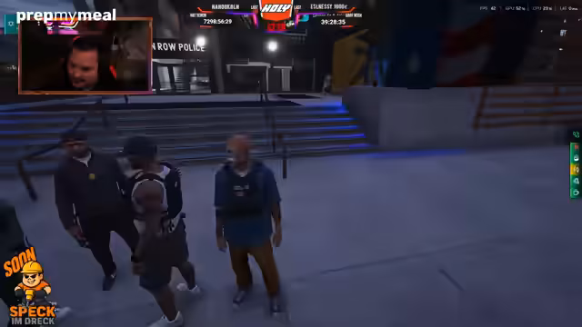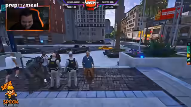 06:55:19Ein ernster Konflikt eskaliert, als ein SWAT-Team einen unbekannten Dulli bei den Leuten des Streamers abliefert, der anschließend dessen Crew verprügelt. Der mutmaßliche Täter wird gefasst und seine Bodycam beschlagnahmt. Parallel dazu wird ein Beamter namens O'Brien von einem Einbrecher getreten und der Verdächtige namens Sweet flieht vor der Polizei. Ein weiterer Einsatz führt zur Verhaftung von Dieter Hoffmann, der in Franzövanien agiert.