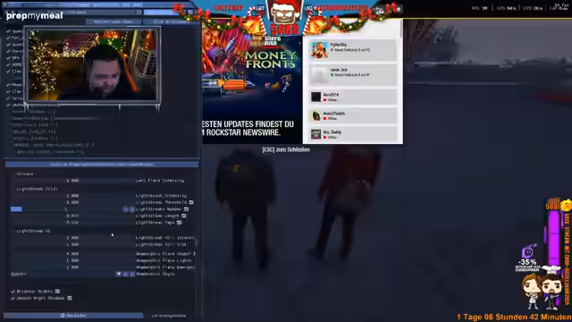 06:47:59Es wird intensiv daran gearbeitet, das Sternsingen pünktlich zum ersten Advent zu starten. Die Gewerbe sollen ab morgen, dem ersten Advent, ihre Produkte zwischen 20 und 22 Uhr verkaufen können, auch wenn die Rezepte noch nicht vollständig implementiert sind. Es wird erwartet, dass die Essensangebote verfügbar sein werden, auch wenn eventuell zunächst provisorische Etiketten verwendet werden müssen. Ein neues Weihnachts-Design Kit für Getränke wird eingeführt, das unbegrenzt stapelbar ist, um Platzprobleme zu vermeiden. Zudem wird über zukünftige Events wie Fasching in Los Santos nachgedacht, mit der Vision eines großen Rosenmontagszuges. Die Organisatoren sind sich des hohen Arbeitsaufwands bewusst, bleiben aber optimistisch.