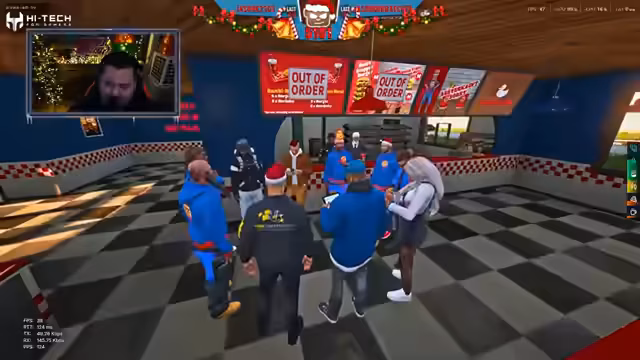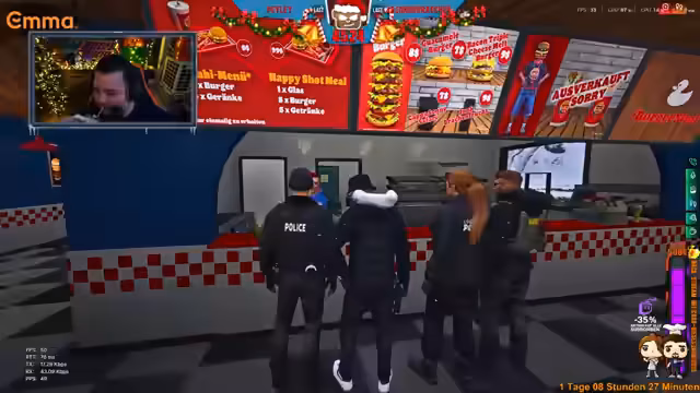 01:16:00Während des Streifendienstes wird über Beschaffungskriminalität gesprochen, die oft in den frühen Morgenstunden stattfindet, wenn Trailer und andere Güter organisiert werden. Es wird eine Viererstreife vorgeschlagen, um Kingslay mitzunehmen. Bei einem Zwischenstopp am Burger Shot werden fünf Hardstopper Burger und fünf Bubble Teas bestellt, wobei spezielle Wünsche wie 'ohne Tomaten' und 'mit extra Bacon' geäußert werden. Es wird auch über Trinkgelder diskutiert, wobei der Wunsch geäußert wird, dass das Trinkgeld an die Kollegen verteilt wird, da der Streamer in dieser Woche bereits ein 'Spitzenverdiener' ist. Es wird erwähnt, dass 350.000 in den Burger Shop investiert wurden. Die Diskussion über die Burger-Bestellung wird mit humorvollen Kommentaren über Avocados und das Lied 'Ich bin Chefkoch' fortgesetzt.