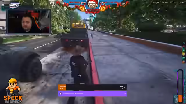 04:33:45Während des Streams beschreibt der Streamer eine seltsame Begegnung mit einer fremden Person im Spiel, die ihn anscheinend fälschlich für einen Polizisten hält und ihn um einen Dienstausweis bittet. Er spielt mit der Situation und erwähnt, dass er eine Weste besitzt, aber keine echte Polizeiuniform. Außerdem spricht er über seine Freunde und wie er sie im Spiel unterstützt, sowie über seine Tiere und die Interaktion mit seiner Community.