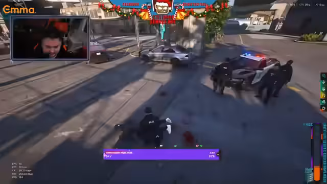 05:12:24In der Polizeieinsatzsimulation droht eine Person mit einer Waffe und weigert sich, sich festnehmen zu lassen. Sie wird wiederholt aufgefordert, auf die Straße zu kommen, bleibt aber versteckt und ist extrem aggressiv. Der Streamer und sein Kollege sind im Einsatz und unterstellen der Person eine höchste Gefährlichkeit, da zuvor auf Kollegen geschossen wurde. Sie versuchen, die Person festzunehmen, wobei sie betonen, dass sie Schusswaffen einsetzen werden, wenn sie sich nicht kooperiert. Die Situation eskaliert und die Festnahme wird mit Nachdruck durchgeführt.