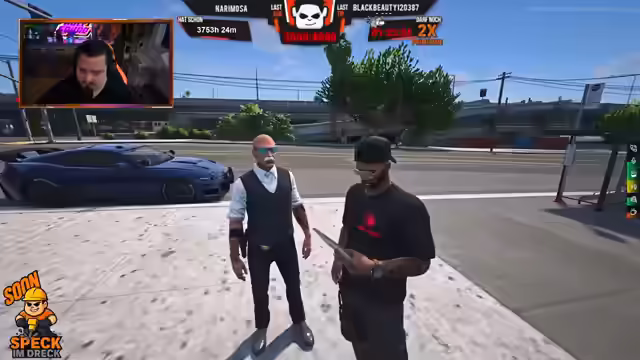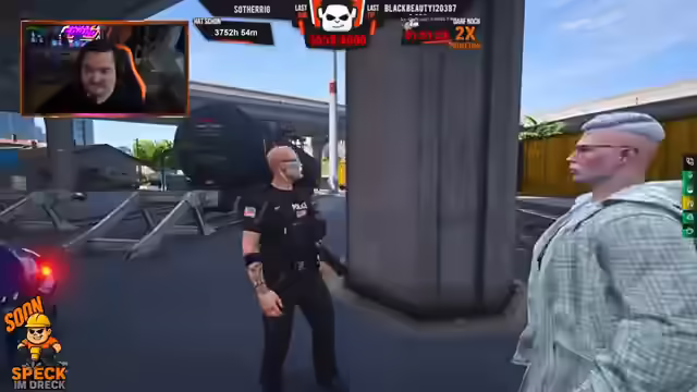 03:18:08Es gibt einen Alarm auf dem Nussgelände, wo ein Fahrzeug angefahren wurde. Eine Verfolgungsjagd mit einem Bravado findet statt, bei der zwei Personen beteiligt sind. Das Fahrzeug fährt über Gleise und durch ein Lager, bevor es Richtung Norden flieht. Eine Person wird aus dem Fahrzeug entfernt und entwaffnet, inklusive Handy und Bankkarte. Es wird über eine mögliche Entziehung gesprochen. Der Waffenschein wird kontrolliert, und das Auto darf mitgenommen werden. Es werden Texturfehler an einem Fahrzeug bemerkt. Ein Fahrer wird für seine Fahrweise kritisiert. Es wird ein Autoverleih erwähnt. Eine Bestellung für 45 ACP Munition im Wert von 600.000 Dollar wurde aufgegeben, da Halloween bevorsteht. Eine Schulung muss nochmals besucht werden. Diskussion über blaue SAP Uniformen und eine neue Schneiderei. Eine Person fährt mit einer Weihnachtsmütze. Es wird überlegt, ob man blaue Autos anschaffen soll. Parker soll nochmals mitreden und sich dann melden, wenn es Neuigkeiten gibt. Es wird über Uniformdetails gesprochen.
