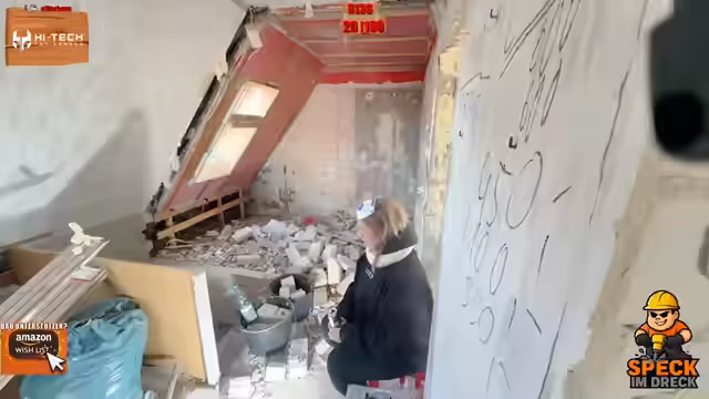 02:08:24Der Höhepunkt des Streams ist der massive Abriss einer nicht tragenden Wand im Erdgeschoss. Mit einem schweren Hammer wird die Mauer systematisch zerstört, was zu einem gewaltigen Staub und Schutt führt. Währenddessen sorgt der Streamer für Unterhaltung, spielt Musik und interagiert intensiv mit dem Chat, der den Vorgang beobachtet und kommentiert. Die Arbeit ist körperlich anstrengend und erfordert volle Konzentration, um Schäden an umstehenden Strukturen zu vermeiden.
