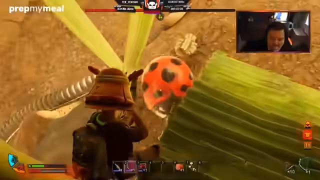 00:29:30Ein zentrales Thema des Streams ist das Züchten von Ameisen. Dafür müssen mehrere Eier und Maden beschafft werden, um eine Brutstation zu befüllen. Gleichzeitig wird intensiv nach Rohstoffen wie Ameisenteilen, Milbenzangen und Blaubeeren gesucht, die für den Bau von Rüstungen und Werkzeugen benötigt werden. Es wird eine Ameise als Mount genutzt, um sich schneller fortbewegen und mehr tragen zu können. Die Ameise wird als entscheidender Vorteil für das Überleben und die Exploration angesehen.