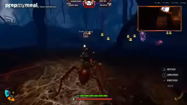 09:17:05Der Streamer arbeitet an Quests, wie dem Bau von Sendetürmen und der Bekämpfung von Spinnensoldaten, die einen gehackten SignalTower bewachen. Er erkundet verschiedene Höhlen, wie eine Spinnenhöhle und ein Labor, und kämpft gegen diverse Kreaturen wie Radnetz-Spinnen, Skorpione und Bienen. Dabei ist die Erzählung ein zentraler Aspekt, der dem Streamer wichtig ist. Der Fokus liegt auf der Teamarbeit und dem Fortschritt im Spiel, auch wenn dies durch wiederholtes Sterben und das Verlieren von Ausrüstung erschwert wird. Der Versuch, eine Gasmaske zu bauen, wird als entscheidend für den Zugang zu neuen Gebieten angesehen.
