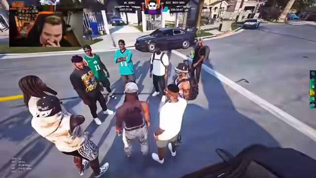 05:00:15Der Streamer berichtet über Aktivitäten seiner Gang. Es geht um ein geplantes Treffen auf entspannter Basis und den Erhalt von Waffenteilen und Ressourcen. Ein wichtiges Gespräch betrifft die Verwendung eines 'SOB-Flags', der von der Gruppe nicht gutgeheissen wird. Der Streamer versichert, das Problem zu lösen und betont die Wichtigkeit von Einigkeit.