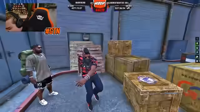 02:50:34Der Streamer wird im Spiel von einer Organisation namens M.O.B. kontaktiert, die ihm ein Waffengeschäft anbietet. Während des Gesprächs mit den Mitgliedern von M.O.B. wird der grüne Bravado, in dem der Streamer fährt, von einer anderen Person gestohlen. Dies führt zu einer weiteren Verfolgungsjagd, bei der der Streamer versucht, das Fahrzeug zurückzuholen und den Fahrer zu stellen, um die gestohlenen Teile wiederzubesorgen.